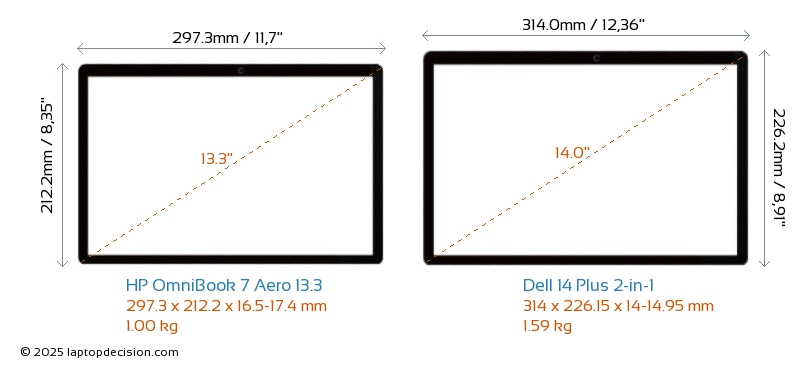 Thunderbolt 14 Plus 2-in-1 está equipado con un puerto Thunderbolt 4. OmniBook 7 Aero 13.3 no tiene puerto Thunderbolt.