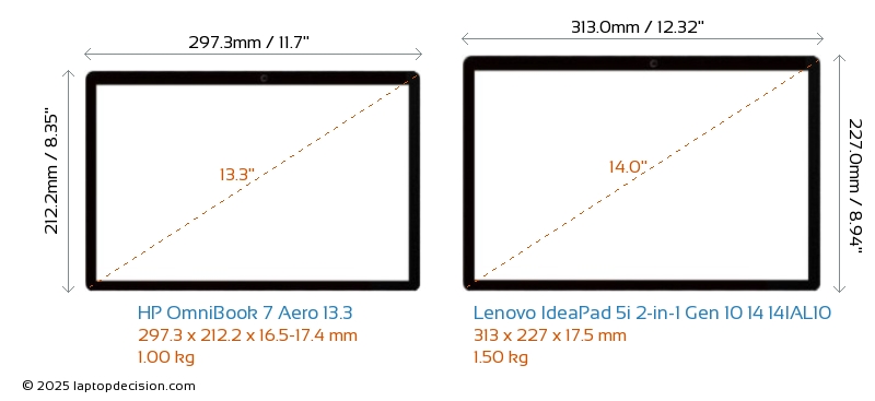 USBAmbos OmniBook 7 Aero 13.3 y IdeaPad 5i 2-in-1 Gen 10 14 14IAL10 cuentan con 2x USB 3.2 puertos USB-A.Ambos OmniBook 7 Aero 13.3 y IdeaPad 5i 2-in-1 Gen 10 14 14IAL10 cuentan con 2x USB 4.0 puertos USB Type-C.
