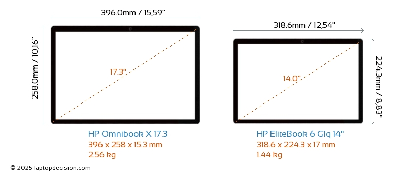 Thunderbolt Omnibook X 17.3 está equipado con un puerto Thunderbolt 4. EliteBook 6 G1q 14" no tiene puerto Thunderbolt.