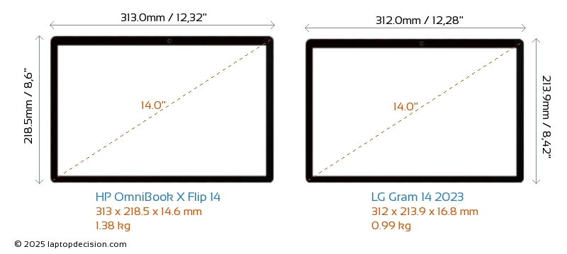 USBAmbos OmniBook X Flip 14 y Gram 14 2023 cuentan con 2x USB 3.2 puertos USB-A.Ambos OmniBook X Flip 14 y Gram 14 2023 cuentan con 2x USB 4.0 puertos USB Type-C.