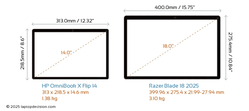 HDMIAmbos OmniBook X Flip 14 y Blade 18 2025 cuentan con un puerto HDMI (1x HDMI 2.1) para conectar a monitores externos.
