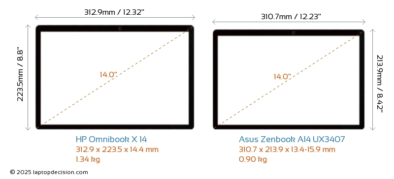 USBAmbos Omnibook X 14 y Zenbook A14 UX3407 cuentan con 1x USB 3.2 puertos USB-A.Ambos Omnibook X 14 y Zenbook A14 UX3407 cuentan con 2x USB 4.0 puertos USB Type-C.
