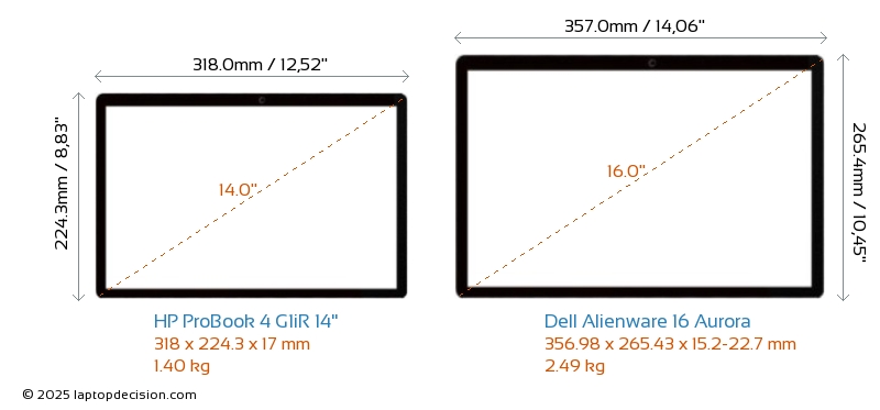 HDMIAmbos ProBook 4 G1iR 14" y Alienware 16 Aurora cuentan con un puerto HDMI (1x HDMI 2.1) para conectar a monitores externos.