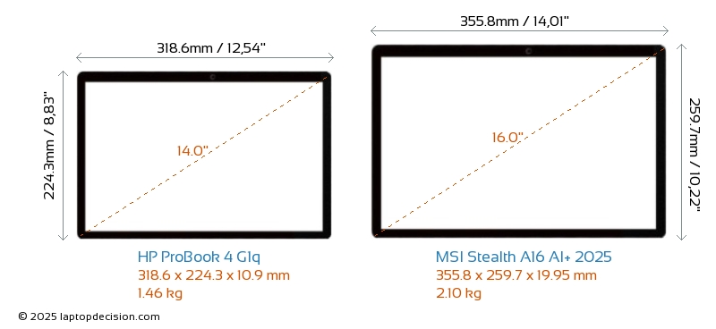HDMIAmbos ProBook 4 G1q y Stealth A16 AI+ 2025 cuentan con un puerto HDMI (1x HDMI 2.1) para conectar a monitores externos.