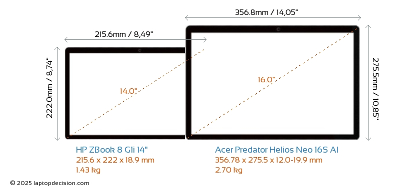 HDMIAmbos ZBook 8 G1i 14" y Predator Helios Neo 16S AI cuentan con un puerto HDMI (1x HDMI 2.1) para conectar a monitores externos.