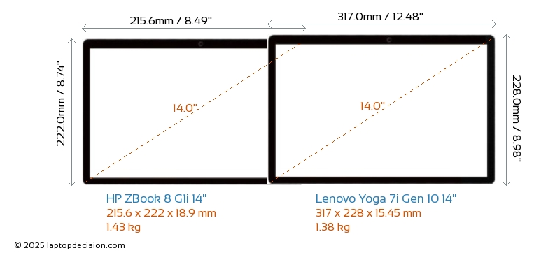HDMIAmbos ZBook 8 G1i 14" y Yoga 7i Gen 10 14" cuentan con un puerto HDMI. ZBook 8 G1i 14" ofrece 1x HDMI 2.1, mientras que Yoga 7i Gen 10 14" ofrece 1x HDMI 1.4.