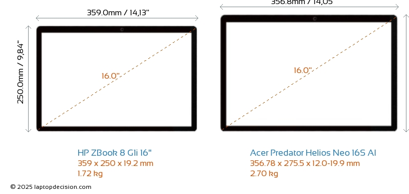 HDMIAmbos ZBook 8 G1i 16" y Predator Helios Neo 16S AI cuentan con un puerto HDMI (1x HDMI 2.1) para conectar a monitores externos.