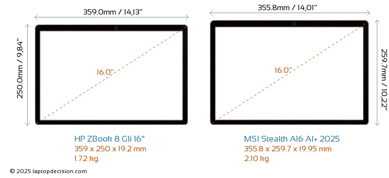 HDMIAmbos ZBook 8 G1i 16" y Stealth A16 AI+ 2025 cuentan con un puerto HDMI (1x HDMI 2.1) para conectar a monitores externos.