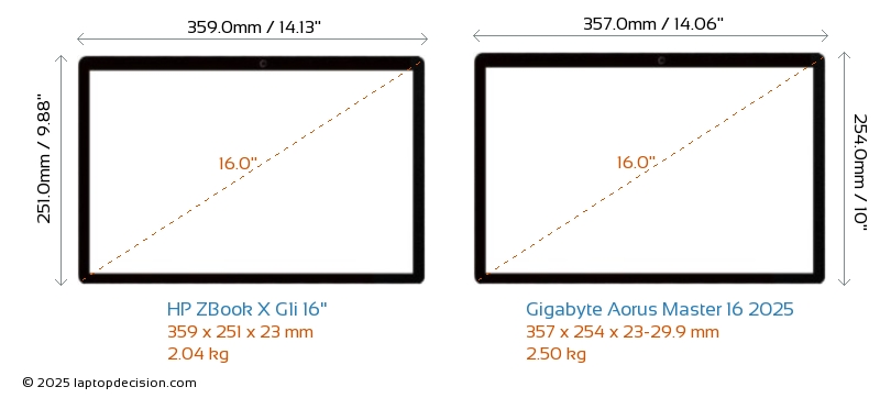 HDMIAmbos ZBook X G1i 16" y Aorus Master 16 2025 cuentan con un puerto HDMI (1x HDMI 2.1) para conectar a monitores externos.