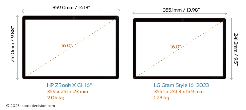 HDMI ZBook X G1i 16" cuenta con un puerto HDMI (1x HDMI 2.1) para conectar a monitores externos. Gram Style 16 2023 no tiene puerto HDMI.