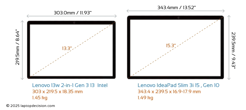 ThunderboltNinguno de los dos 13w 2-in-1 Gen 3 13 Intel ni IdeaPad Slim 3i 15 , Gen 10 tiene puerto Thunderbolt.