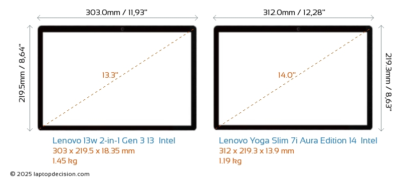 USBAmbos 13w 2-in-1 Gen 3 13 Intel y Yoga Slim 7i Aura Edition 14 Intel tienen puertos USB-A. 13w 2-in-1 Gen 3 13 Intel tiene 2x USB 3.2 puertos USB-A, mientras que Yoga Slim 7i Aura Edition 14 Intel tiene 1x USB 3.2 puertos USB-A.Ambos 13w 2-in-1 Gen 3 13 Intel y Yoga Slim 7i Aura Edition 14 Intel cuentan con 2x USB 4.0 puertos USB Type-C.