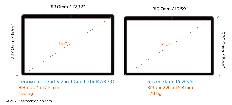 USBAmbos IdeaPad 5 2-in-1 Gen 10 14 14AKP10 y Blade 14 2024 cuentan con 2x USB 3.2 puertos USB-A.Ambos IdeaPad 5 2-in-1 Gen 10 14 14AKP10 y Blade 14 2024 cuentan con 2x USB 4.0 puertos USB Type-C.