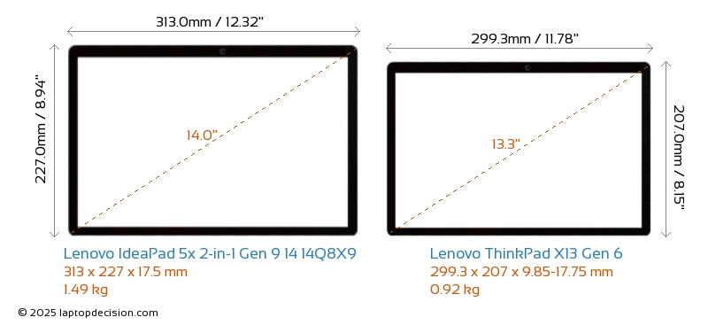 USBAmbos IdeaPad 5x 2-in-1 Gen 9 14 14Q8X9 y ThinkPad X13 Gen 6 cuentan con 2x USB 3.2 puertos USB-A.Ambos IdeaPad 5x 2-in-1 Gen 9 14 14Q8X9 y ThinkPad X13 Gen 6 cuentan con 2x USB 4.0 puertos USB Type-C.