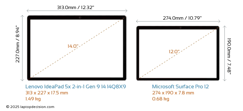 ThunderboltNinguno de los dos IdeaPad 5x 2-in-1 Gen 9 14 14Q8X9 ni Surface Pro 12 tiene puerto Thunderbolt.