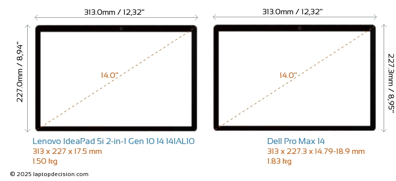 HDMIAmbos IdeaPad 5i 2-in-1 Gen 10 14 14IAL10 y Pro Max 14 cuentan con un puerto HDMI. IdeaPad 5i 2-in-1 Gen 10 14 14IAL10 ofrece 1x HDMI 1.4, mientras que Pro Max 14 ofrece 1x HDMI 2.1.