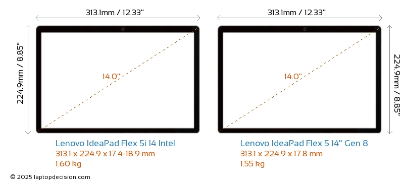 Thunderbolt IdeaPad Flex 5i 14 Intel está equipado con un puerto Thunderbolt 4. IdeaPad Flex 5 14" Gen 8 no tiene puerto Thunderbolt.