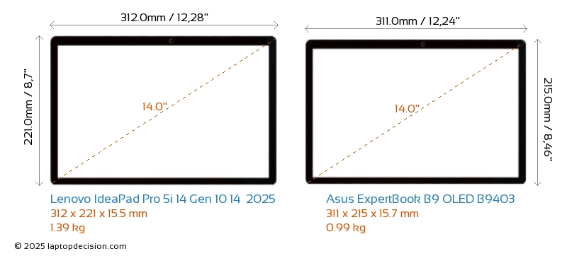 HDMIAmbos IdeaPad Pro 5i 14 Gen 10 14 2025 y ExpertBook B9 OLED B9403 cuentan con un puerto HDMI (1x HDMI 2.1) para conectar a monitores externos.