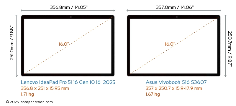 Thunderbolt IdeaPad Pro 5i 16 Gen 10 16 2025 está equipado con un puerto Thunderbolt 4. Vivobook S16 S3607 no tiene puerto Thunderbolt.