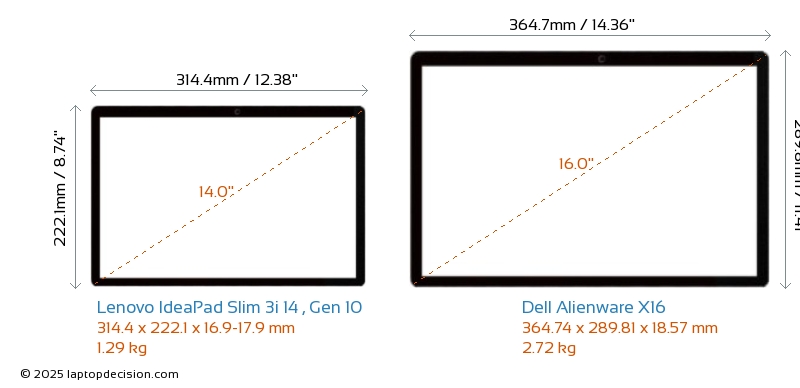 USBAmbos IdeaPad Slim 3i 14 , Gen 10 y Alienware X16 cuentan con 2x USB 3.2 puertos USB-A.Ambos IdeaPad Slim 3i 14 , Gen 10 y Alienware X16 tienen puertos USB Type-C. IdeaPad Slim 3i 14 , Gen 10 tiene 1x USB 3.2 puertos USB Type-C, mientras que Alienware X16 tiene 3x USB 4.0 puertos USB Type-C.