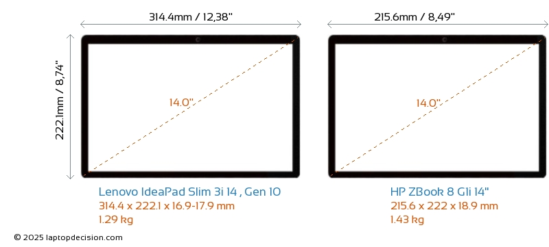 HDMIAmbos IdeaPad Slim 3i 14 , Gen 10 y ZBook 8 G1i 14" cuentan con un puerto HDMI. IdeaPad Slim 3i 14 , Gen 10 ofrece 1x HDMI 1.4, mientras que ZBook 8 G1i 14" ofrece 1x HDMI 2.1.