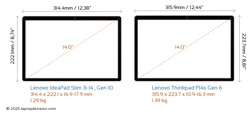 USBAmbos IdeaPad Slim 3i 14 , Gen 10 y Thinkpad P14s Gen 6 cuentan con 2x USB 3.2 puertos USB-A.Ambos IdeaPad Slim 3i 14 , Gen 10 y Thinkpad P14s Gen 6 tienen puertos USB Type-C. IdeaPad Slim 3i 14 , Gen 10 tiene 1x USB 3.2 puertos USB Type-C, mientras que Thinkpad P14s Gen 6 tiene 2x USB 4.0 puertos USB Type-C.