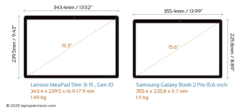 ThunderboltGalaxy Book 2 Pro 15.6-inch está equipado con un puerto Thunderbolt 4. IdeaPad Slim 3i 15 , Gen 10 no tiene puerto Thunderbolt.