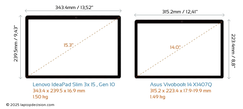 HDMIAmbos IdeaPad Slim 3x 15 , Gen 10 y Vivobook 14 X1407Q cuentan con un puerto HDMI. IdeaPad Slim 3x 15 , Gen 10 ofrece 1x HDMI 1.4, mientras que Vivobook 14 X1407Q ofrece 1x HDMI 2.1.