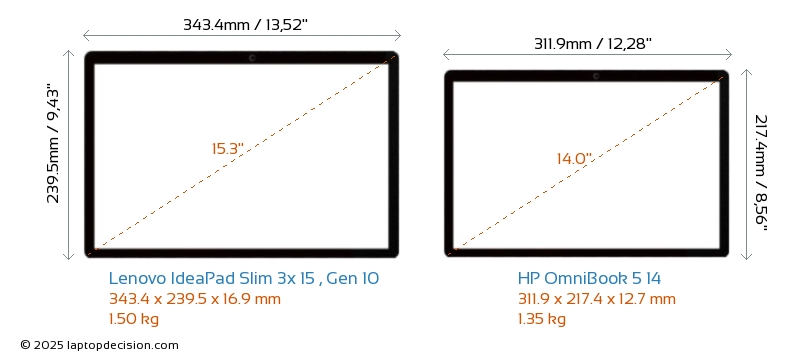 HDMI IdeaPad Slim 3x 15 , Gen 10 cuenta con un puerto HDMI (1x HDMI 1.4) para conectar a monitores externos. OmniBook 5 14 no tiene puerto HDMI.