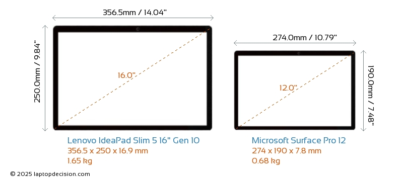 HDMI IdeaPad Slim 5 16" Gen 10 cuenta con un puerto HDMI (1x HDMI 1.4) para conectar a monitores externos. Surface Pro 12 no tiene puerto HDMI.