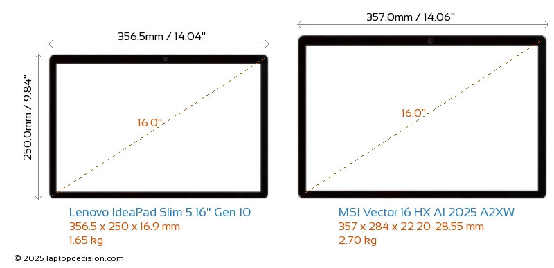 HDMIAmbos IdeaPad Slim 5 16" Gen 10 y Vector 16 HX AI 2025 A2XW cuentan con un puerto HDMI. IdeaPad Slim 5 16" Gen 10 ofrece 1x HDMI 1.4, mientras que Vector 16 HX AI 2025 A2XW ofrece 1x HDMI 2.1.