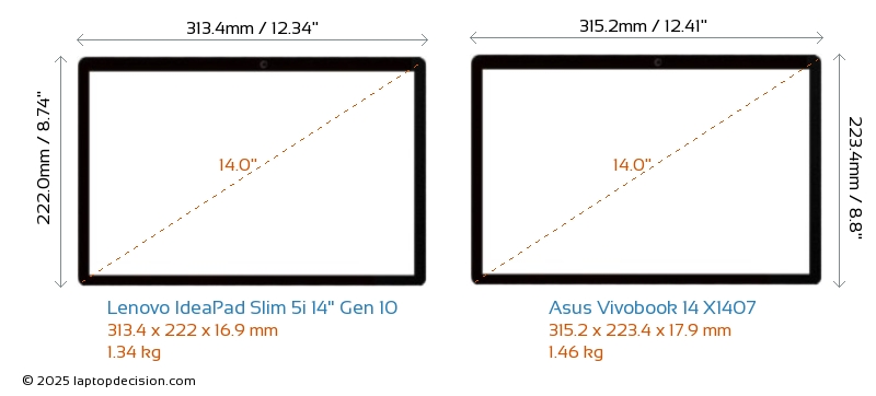 HDMIAmbos IdeaPad Slim 5i 14" Gen 10 y Vivobook 14 X1407 cuentan con un puerto HDMI (1x HDMI 1.4) para conectar a monitores externos.