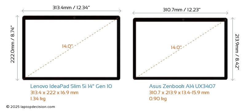 Thunderbolt Zenbook A14 UX3407 está equipado con un puerto Thunderbolt 4. IdeaPad Slim 5i 14" Gen 10 no tiene puerto Thunderbolt.