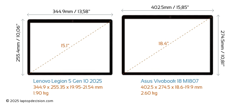 HDMIAmbos Legion 5 Gen 10 2025 y Vivobook 18 M1807 cuentan con un puerto HDMI (1x HDMI 2.1) para conectar a monitores externos.