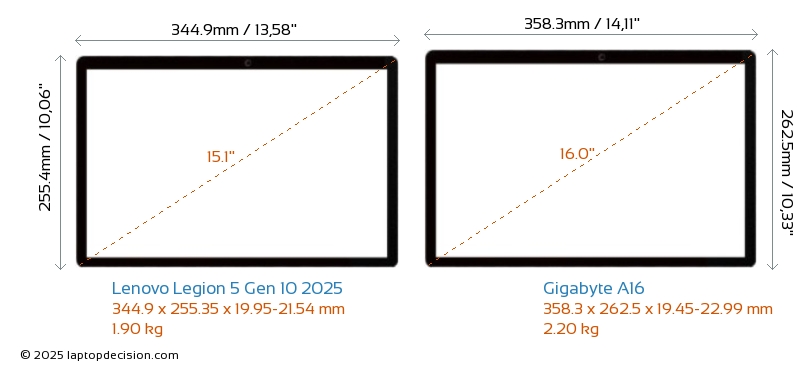 USBAmbos Legion 5 Gen 10 2025 y A16 cuentan con 3x USB 3.2 puertos USB-A.Ambos Legion 5 Gen 10 2025 y A16 cuentan con 2x USB 3.2 puertos USB Type-C.