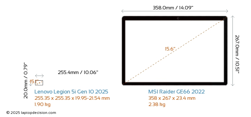 USBAmbos Legion 5i Gen 10 2025 y Raider GE66 2022 cuentan con 3x USB 3.2 puertos USB-A.Ambos Legion 5i Gen 10 2025 y Raider GE66 2022 cuentan con 2x USB 3.2 puertos USB Type-C.