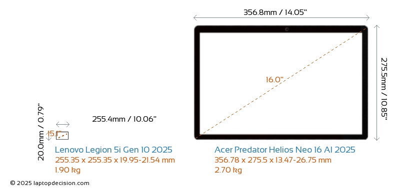 HDMIAmbos Legion 5i Gen 10 2025 y Predator Helios Neo 16 AI 2025 cuentan con un puerto HDMI (1x HDMI 2.1) para conectar a monitores externos.
