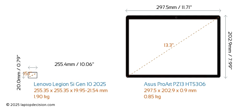 HDMI Legion 5i Gen 10 2025 cuenta con un puerto HDMI (1x HDMI 2.1) para conectar a monitores externos. ProArt PZ13 HT5306 no tiene puerto HDMI.