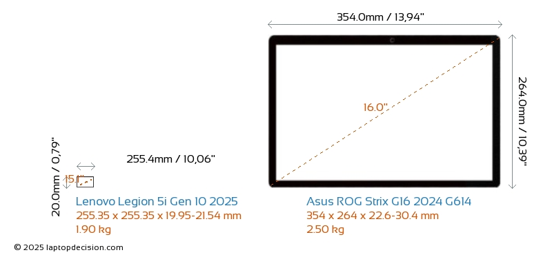Thunderbolt ROG Strix G16 2024 G614 está equipado con un puerto Thunderbolt 4. Legion 5i Gen 10 2025 no tiene puerto Thunderbolt.