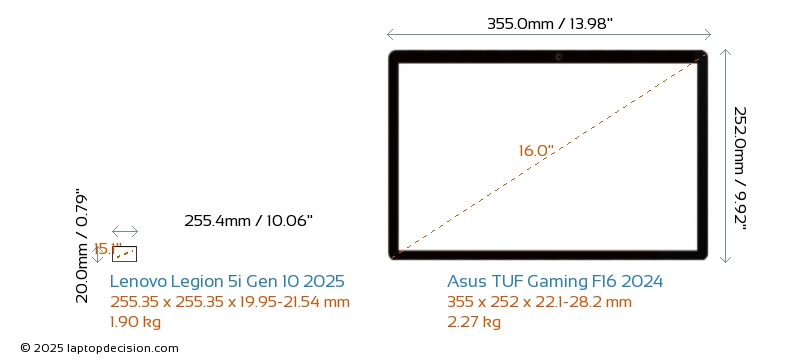 Thunderbolt TUF Gaming F16 2024 está equipado con un puerto Thunderbolt 4. Legion 5i Gen 10 2025 no tiene puerto Thunderbolt.