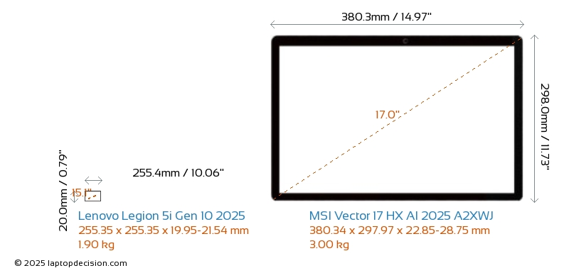 Thunderbolt Vector 17 HX AI 2025 A2XWJ está equipado con un puerto Thunderbolt 5. Legion 5i Gen 10 2025 no tiene puerto Thunderbolt.
