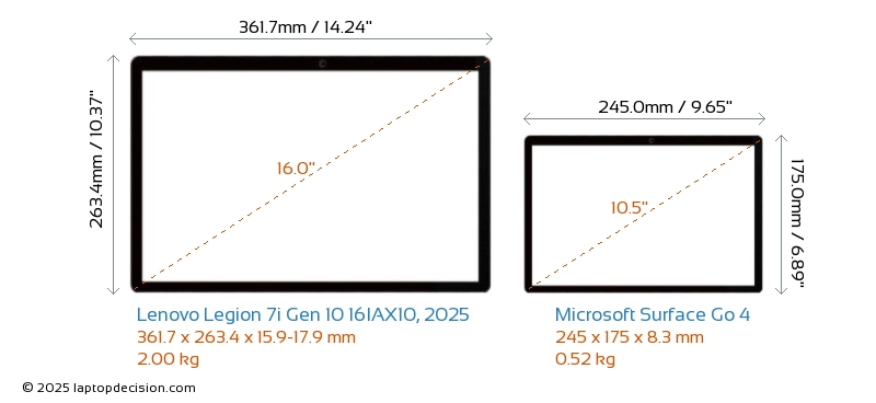 HDMI Legion 7i Gen 10 16IAX10, 2025 cuenta con un puerto HDMI (1x HDMI 2.1) para conectar a monitores externos. Surface Go 4 no tiene puerto HDMI.