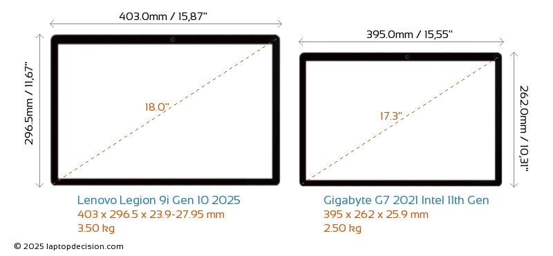 USBAmbos Legion 9i Gen 10 2025 y G7 2021 Intel 11th Gen cuentan con 3x USB 3.2 puertos USB-A.Ambos Legion 9i Gen 10 2025 y G7 2021 Intel 11th Gen tienen puertos USB Type-C. Legion 9i Gen 10 2025 tiene 3x USB 4.0 puertos USB Type-C, mientras que G7 2021 Intel 11th Gen tiene 1x USB 3.2 puertos USB Type-C.