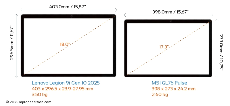 USBAmbos Legion 9i Gen 10 2025 y GL76 Pulse cuentan con 3x USB 3.2 puertos USB-A.Ambos Legion 9i Gen 10 2025 y GL76 Pulse tienen puertos USB Type-C. Legion 9i Gen 10 2025 tiene 3x USB 4.0 puertos USB Type-C, mientras que GL76 Pulse tiene 1x USB 3.2 puertos USB Type-C.