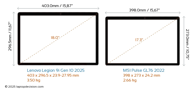 USBAmbos Legion 9i Gen 10 2025 y Pulse GL76 2022 cuentan con 3x USB 3.2 puertos USB-A.Ambos Legion 9i Gen 10 2025 y Pulse GL76 2022 tienen puertos USB Type-C. Legion 9i Gen 10 2025 tiene 3x USB 4.0 puertos USB Type-C, mientras que Pulse GL76 2022 tiene 1x USB 3.2 puertos USB Type-C.