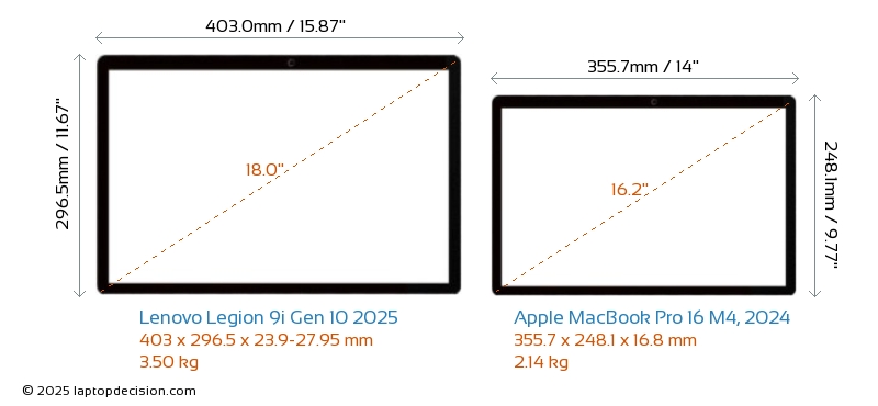 HDMIAmbos Legion 9i Gen 10 2025 y MacBook Pro 16 M4, 2024 cuentan con un puerto HDMI (1x HDMI 2.1) para conectar a monitores externos.