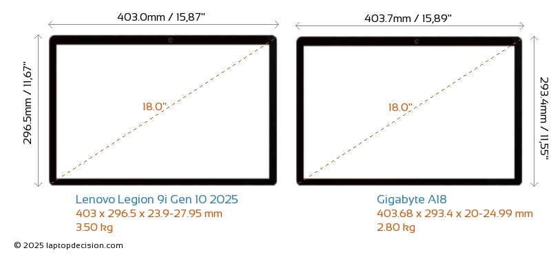 USBAmbos Legion 9i Gen 10 2025 y A18 cuentan con 3x USB 3.2 puertos USB-A.Ambos Legion 9i Gen 10 2025 y A18 tienen puertos USB Type-C. Legion 9i Gen 10 2025 tiene 3x USB 4.0 puertos USB Type-C, mientras que A18 tiene 1x USB 3.2 puertos USB Type-C.