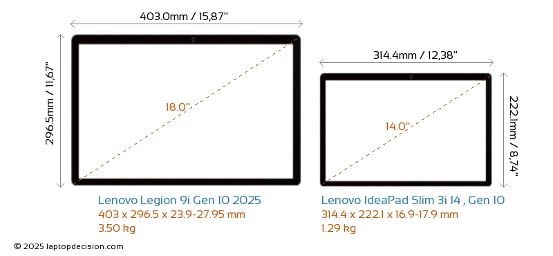 Thunderbolt Legion 9i Gen 10 2025 está equipado con un puerto Thunderbolt 5. IdeaPad Slim 3i 14 , Gen 10 no tiene puerto Thunderbolt.