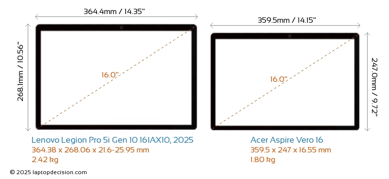 HDMIAmbos Legion Pro 5i Gen 10 16IAX10, 2025 y Aspire Vero 16 cuentan con un puerto HDMI (1x HDMI 2.1) para conectar a monitores externos.