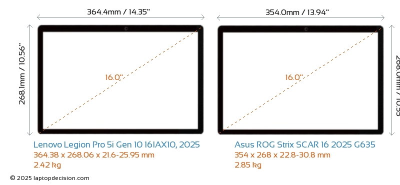 USBAmbos Legion Pro 5i Gen 10 16IAX10, 2025 y ROG Strix SCAR 16 2025 G635 cuentan con 3x USB 3.2 puertos USB-A.Ambos Legion Pro 5i Gen 10 16IAX10, 2025 y ROG Strix SCAR 16 2025 G635 cuentan con 2x USB 4.0 puertos USB Type-C.